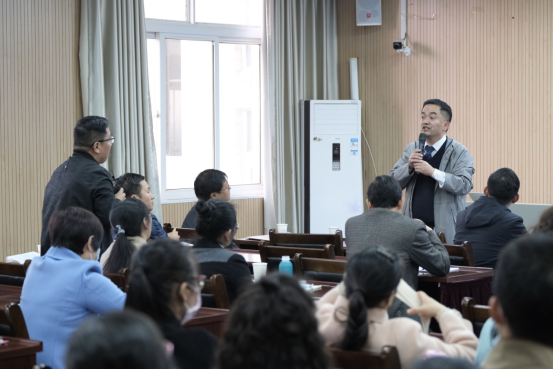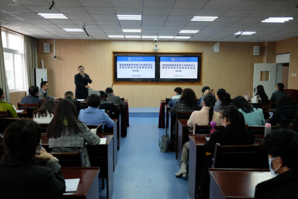 黄东斌部长《以信息化时代背景下的一流课程建设探索与实践》为题,结合自己的《大学生职业核心能力教育》、《教育学》等课程从混合式课程设计案例展示、选择好的课程内容、有效利用学习通进行课程建设、利用学习通在线教育工具影响学习环境等方面分享了一流课程建设的宝贵经验和感悟。他强调申报国家级一流课程要注意选择赛道,提炼课程特色,挖掘已有成果,充分利用课程数据,形成个性化的申报书。黄院长鼓励大家要充满热情和干劲,拿出十年磨一剑的勇气,凝聚团队力量,久久为功地做好课程建设工作。