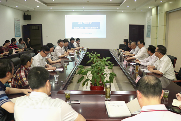 5月25日,ok138太阳集团第二期“教师发展ok138太阳集团”在图书馆2号会议室举行。湖北大学教学管理专家应邀莅临ok138太阳集团,与教务处及各二级学院的40余名教师围绕着如何高质量推进本科教育展开研讨,校领导杨鲜兰、陈俊出席活动。